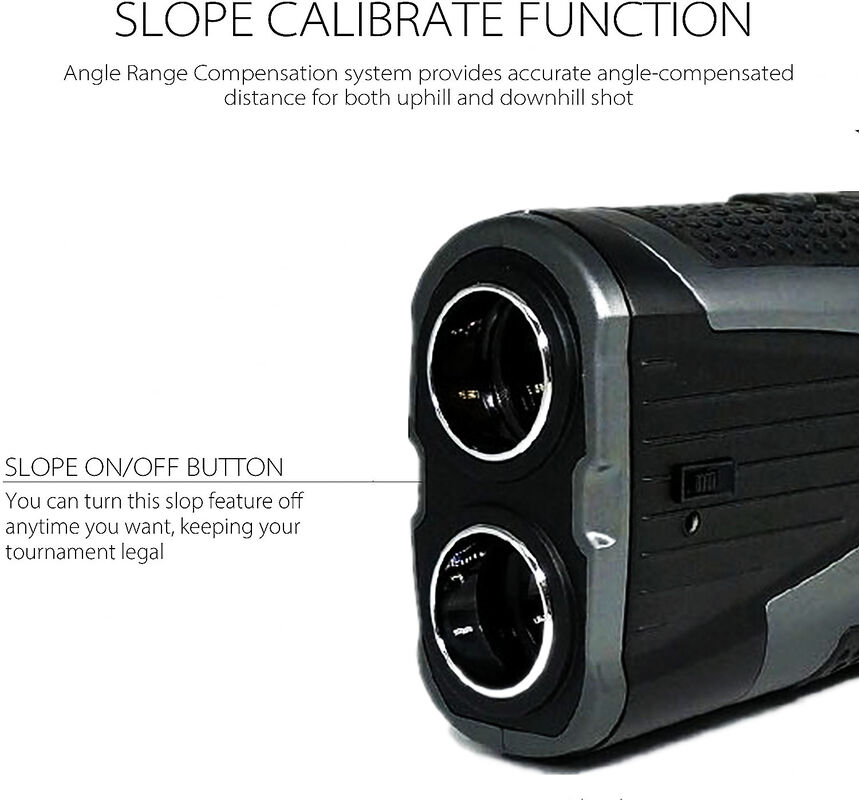 Dispositivos telémetros de golf con pendiente de golf ACTIVADA/DESACTIVADA, aptos para torneos de golf; Precisión ±0.55yd, aumento 6X, ángulo de campo de 7 grados, búsqueda de pines y vibración de bloqueo de bandera y medición de velocidad: 20~300km/h para caza.